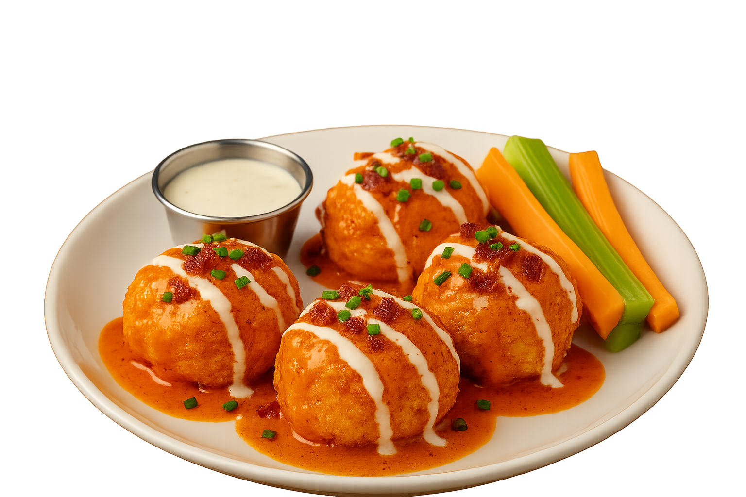 Tender chicken breast wrapped in crisp bacon, drenched in buffalo sauce, and served with a cool ranch drizzle—packed with smoky, spicy, and creamy flavors.